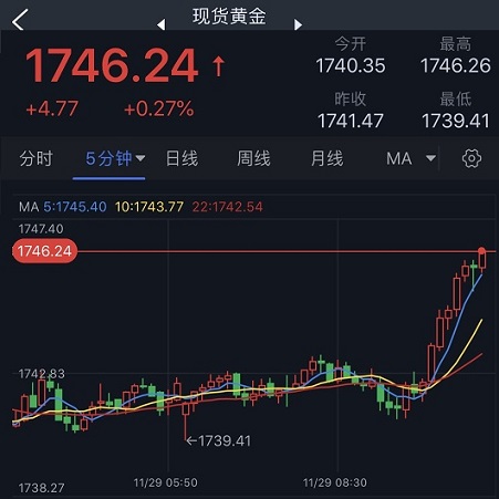 香港时间10:00,现货黄金报1746.24美元/盎司。