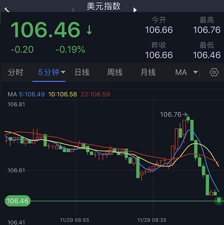 (美元指数5分钟图 来源:24K99)