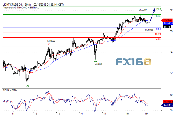 交易策略:在55.40上方做多,目标位依次看向56.35以及56.90。或者,在55.40下方保持看空,下行目标位分别看向55.05以及54.65。