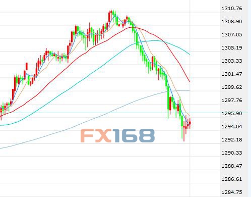 北京时间23:48,现货黄金下跌13美元7,幅跌1.04%,报1295.30美元/盎司。
