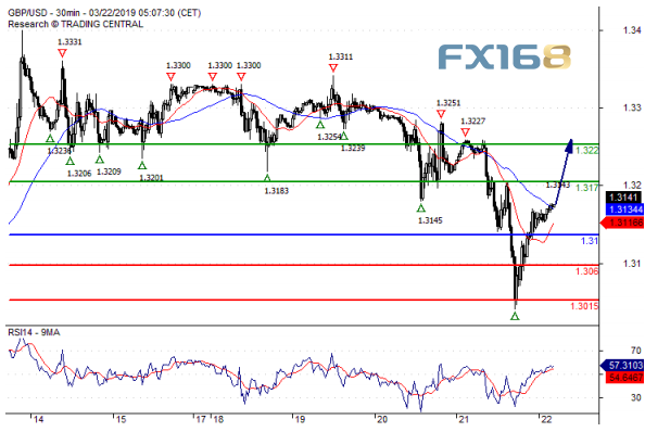 (英镑/美元30分钟图来源:瑞讯银行、FX168财经网)