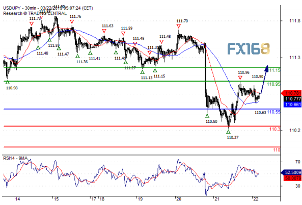 交易策略:在110.55上方看涨,目标位分别看向110.95以及111.15。或者,在110.55下方保持看空,目标位依次看向110.30以及110.00。