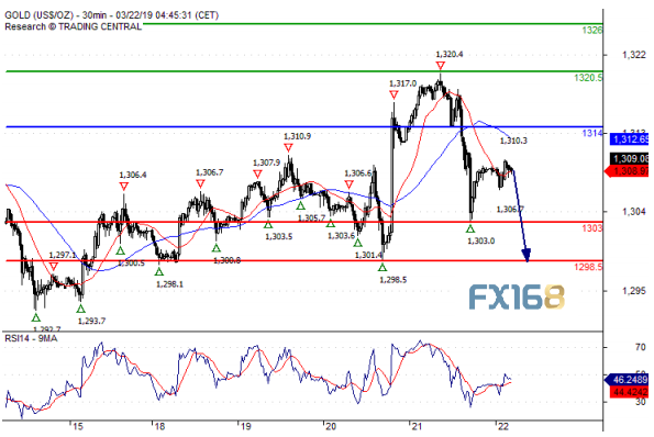 理由:只要阻力位1314.00未被攻克,那么跌至1303.00下方的风险依旧很高。
