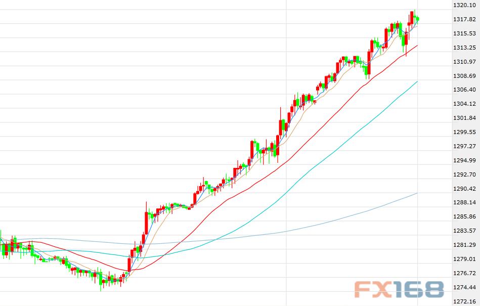 北京时间23:54,现货黄金上涨13.00美元,涨幅1%,报1318.40美元/盎司。