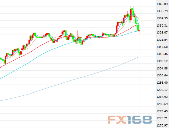 (现货黄金30分钟走势图,来源:FX168财经网)