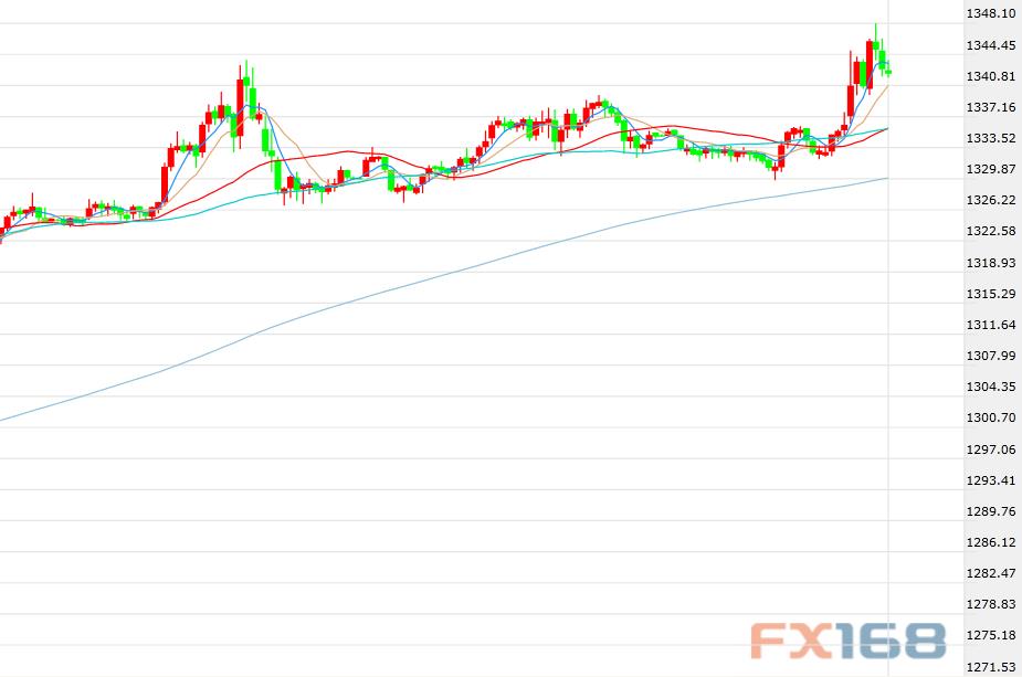 北京时间23:45,现货黄金上涨7.61美元,涨幅0.57%,报1342.91美元/盎司。