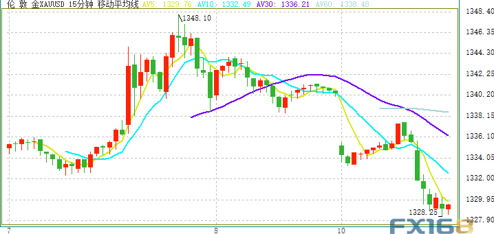 周一亚市盘中,因风险偏好情绪升温,黄金多头遭受打击。现货金亚市盘中大跌逾10美元,最低一度触及1328.25美元/盎司。
