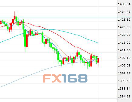 北京时间23:03,现货黄金报1408.70美元/盎司,下跌14.40美元,跌幅1.01%。