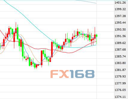 北京时间22:56,现货黄金报1393.45美元/盎司,上涨9.79美元,涨幅0.71%。