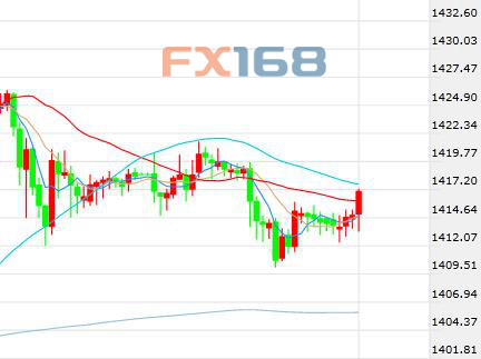 北京时间22:53,现货黄金报1416.25美元/盎司,下跌2.4美元,跌幅0.17%。