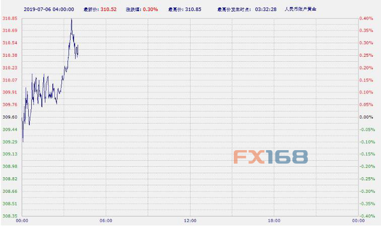 北京时间04:00,中国工商银行纸黄金上涨0.30%,报310.52元/克。