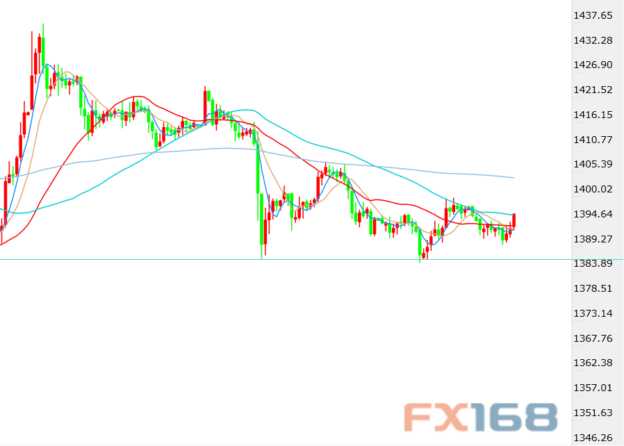 FX168财经报社(香港) 周三(0710日)报道,国际金价日线继续构筑双顶形态,日内至发稿,价格走出类似昨日的行情,再度自1398一线温和走低,现已回落至1390区域。