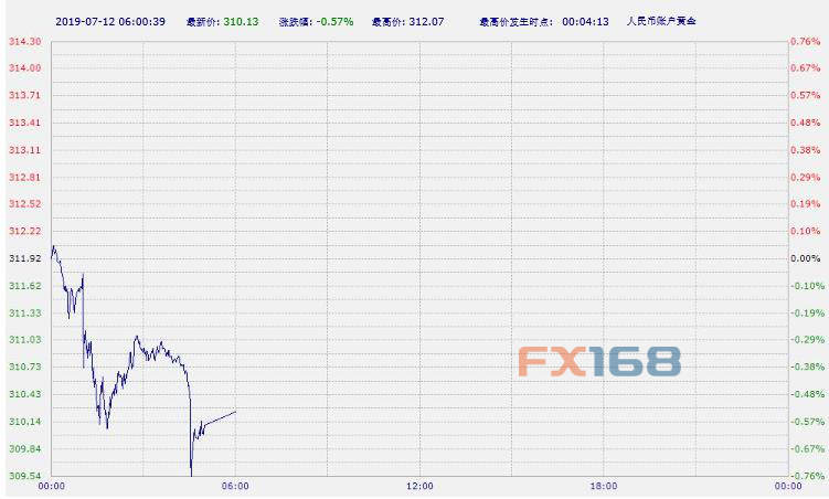 北京时间06:00,中国工商银行纸黄金下跌0.57%,报310.13元/克。