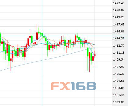 北京时间23:13,现货黄金报1409.50美元/盎司,下跌4.38美元,跌幅0.31%。