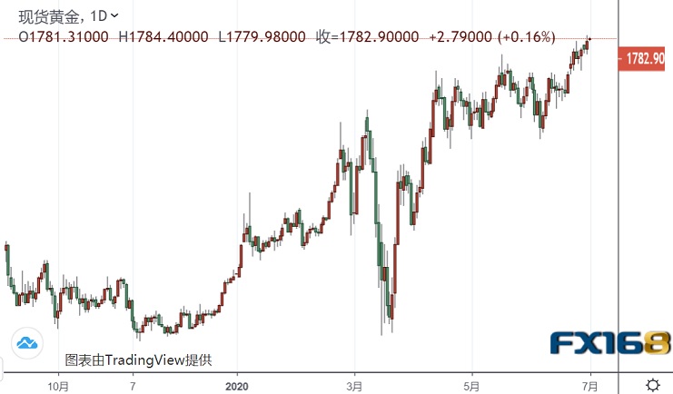 金价周二升至近8年来最高水平1785.88美元/盎司,即2012年10月以来最高水平,因人们对新增新冠病毒感染病例数攀升的担忧与日俱增,这使得对黄金的避险需求保持活跃,推动金价创下自2016年3月以来的最大季度涨幅。