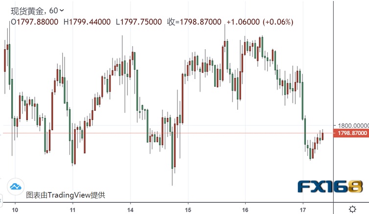 FX168财经报社(香港)讯 周五(7月17日)亚市午盘,国际现货黄金位于1796美元/盎司区域。上一交易日金价震荡下挫,止步此前3连阳,最低下探1794.76美元/盎司,本交易日稍早金价先自低位有所反弹,而目前再度加速回撤,继续受限于1800美元关口下方。