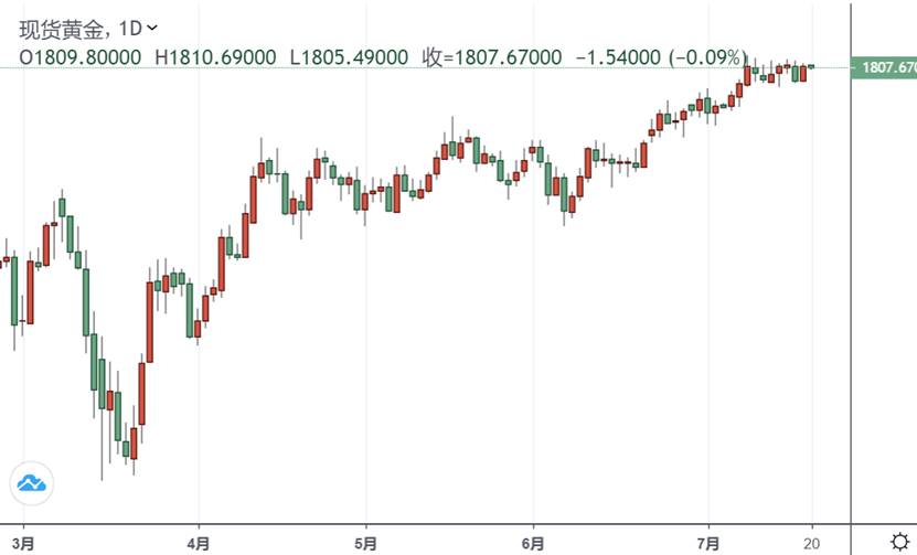 在美国疫情持续反弹之际,中美局势也愈发紧张,这令黄金获得较大的上涨动能。