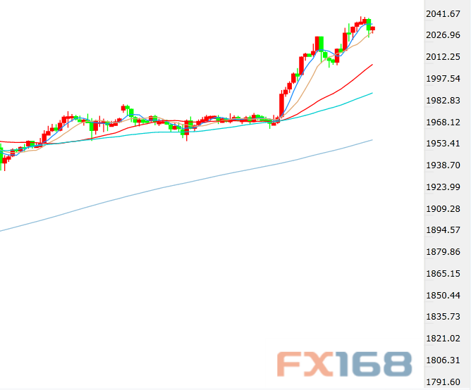 短线前景中,如果金价上破了2050一线,则后一目标位将在2090水平,当前最近的支撑见于2020水平,进而是2000大关。