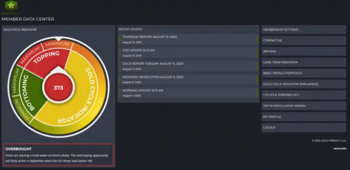 在450见顶后,我们的黄金周期指标(目前为373)正在下降——这表明金属和矿商已经开始了中等程度的调整。