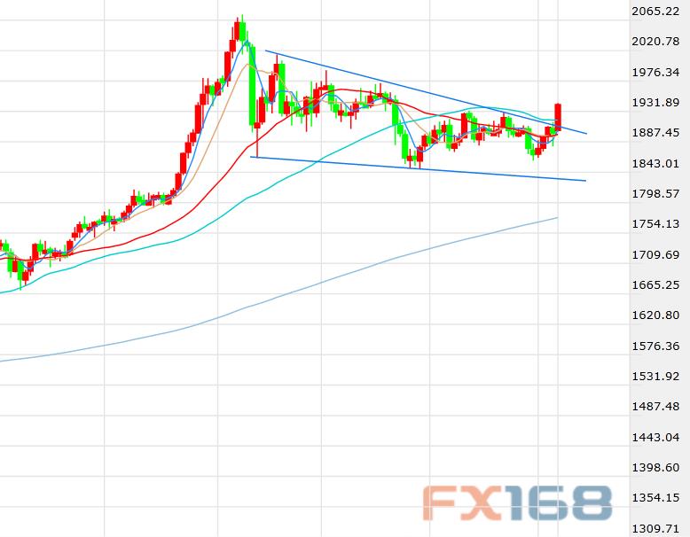 (现货黄金日线图,来源:FX168)