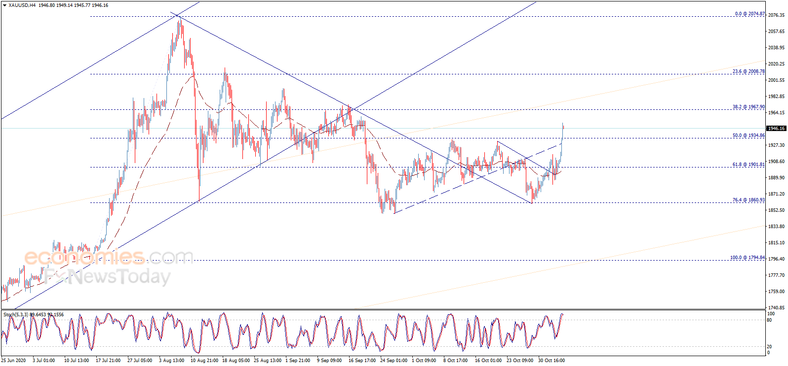 FX168财经报社(香港)讯 周五(11月6日)亚市早盘,现货黄金在昨日飙升后出现回落,金价现报1940美元/盎司附近。知名财经网站Economies.com最新撰文,对金价后市走势进行分析。