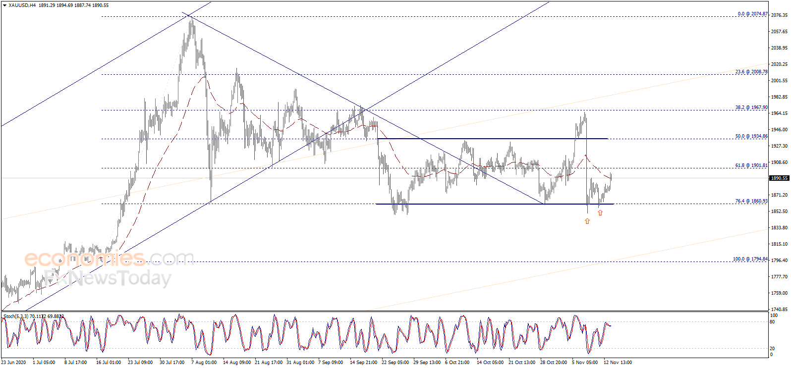 Economies.com称,一旦突破1901.80美元/盎司,金价将延续看涨走势,并触及下一目标1934.86美元/盎司。