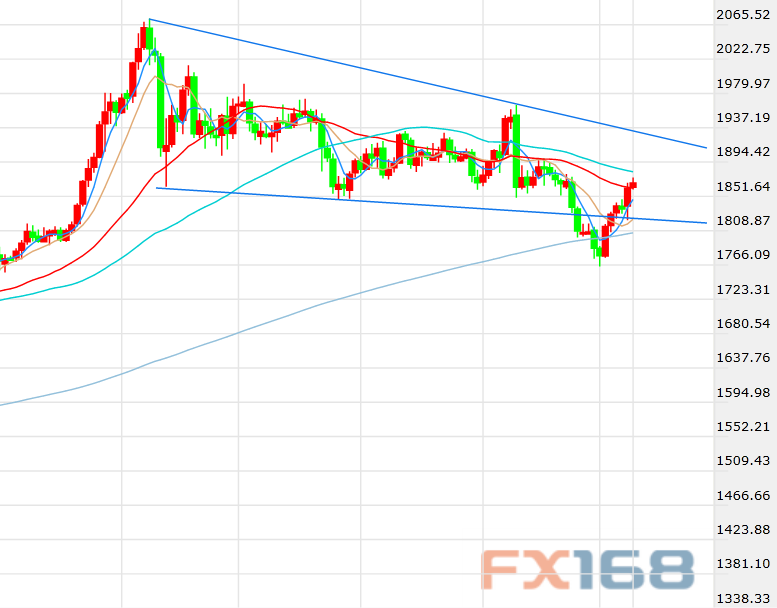 (现货黄金日线图,来源:FX168)