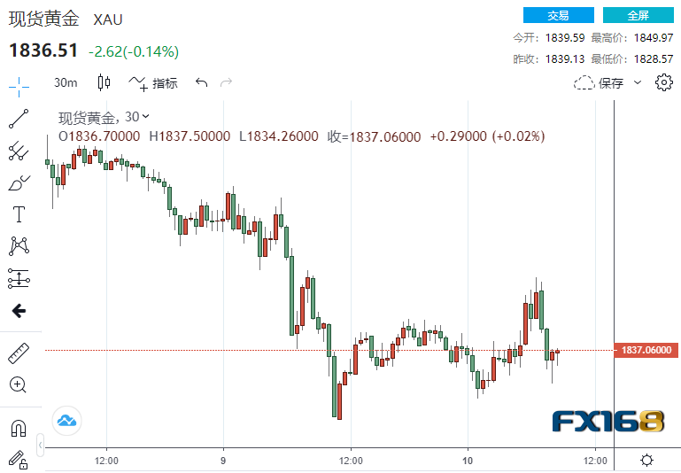 美市盘中,现货黄金再遭遇一波急跌,回落至1830美元/盎司关口略上方,先自低点有所回升。现货黄金日内稍早一度触及1828.57美元/盎司低点,周三曾一度大跌2.5%。