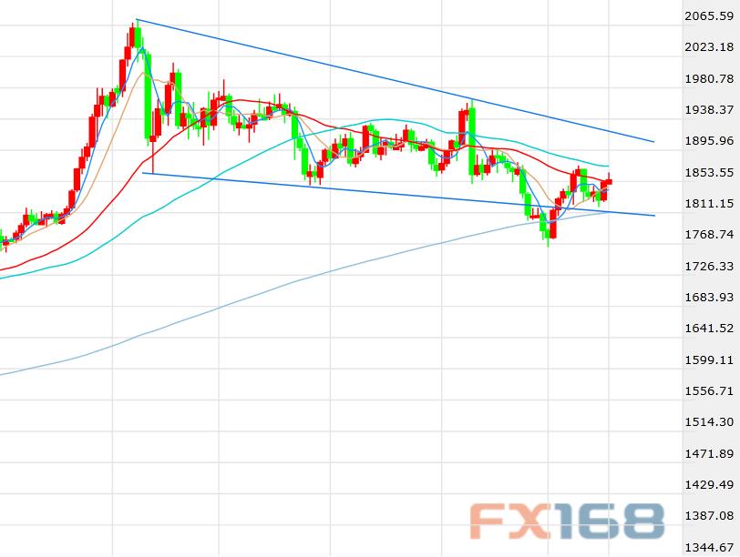 技术面看,日线图上看,黄金上周上破1850-1860区域失败后坚守1830,本周至今的反弹显示将再次上破该区域的阻力,走势有望恢复月初开始的上涨走势。近期上行目标将看向1885以及整数位1900等水平。而若短期回落,1850-1860区域已经转化为限制下跌空间的支撑。
