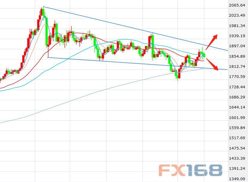 尽管如此,如果无法突破旗形上沿,则有可能重归近期的震荡行情,下行方向可能重看1810美元附近。