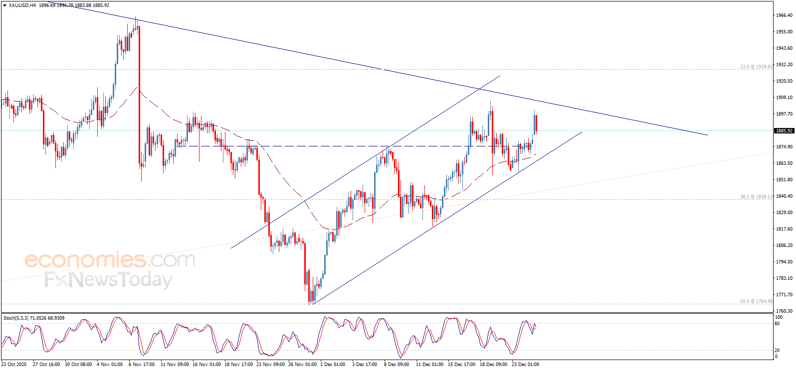 FX168财经报社(香港)讯 周一(12月28日)欧市早盘,现货黄金缩减日内涨幅,金价现报1885美元/盎司附近,亚市盘中金价一度突破1900美元/盎司关口。知名财经资讯网站Economies.com周一最新撰文,对日内黄金走势进行前瞻分析。