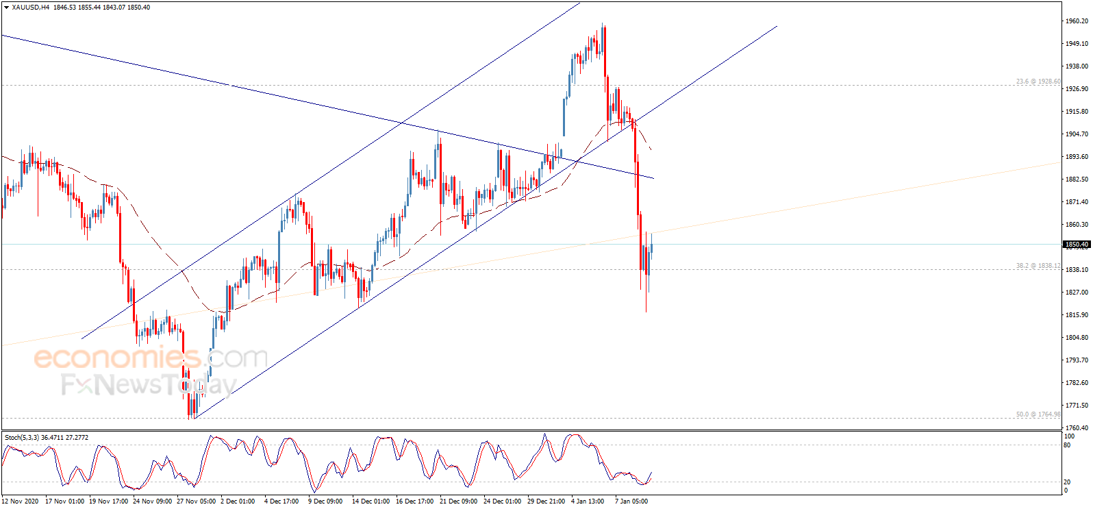 Economies.com称,投资者仍然需要对后市交易保持警惕态度。一旦金价再次跌破1838.10美元/盎司并且维持在这一水平下方,这将为金价在短期内延续看空走势打开道路,下一主要目标瞄准1765.00美元/盎司区域。