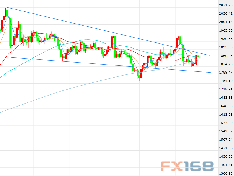 技术面看,黄金价格突破200日移动均线,目前约为1847美元,延续金价的上涨动能。50日移动均线位于1960美元附近,1月12日高点位于1865美元附近。金价在拉锯战中如果跌破200日均线,则需要面临去年3月以来的上升趋势线,目前约为1829美元。