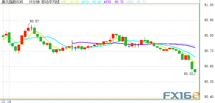 美元指数亚市尾盘最低跌至90.55,亚市盘中该指数一度突破90.80。