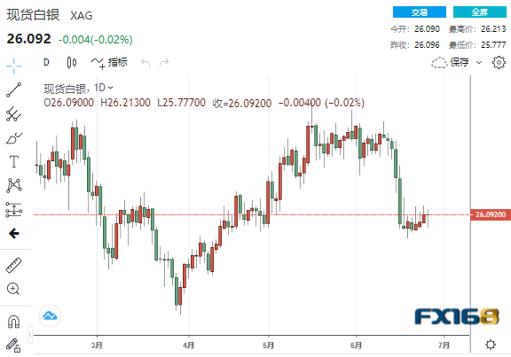 与黄金价格的走势相同,白银则在26.00美元左右波动。目前还不知道价格下一步会如何变动。我们认为,白银将继续上行趋势,从26.00美元或25.00美元的支撑位反弹。