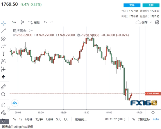 FX168财经报社(香港)讯 周二(6月29日)欧市早盘,现货黄金下挫,跌破1770关口刷新一周以来新低,因美元再度回到92关口上方。
