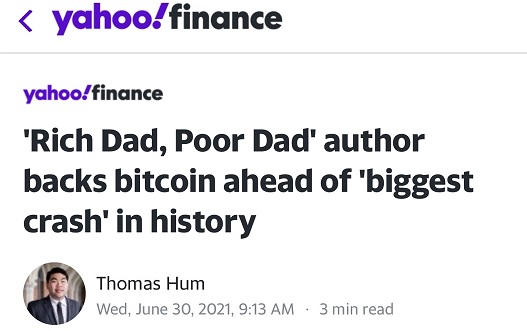罗伯特·清崎6月30日参加了《雅虎财经》直播,讨论了他认为市场崩盘即将到来的原因,以及他对比特币和其他价值储存手段的展望。