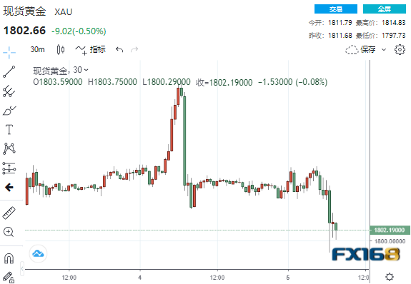 日内稍早,现货金短线迅速跳水,下破1800美元大关至1897.73美元,较日高跌去17美元。
