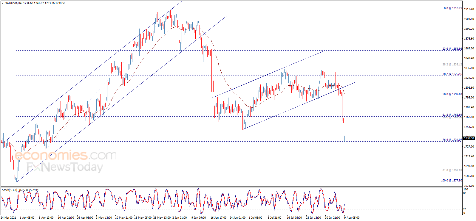 Economies.com预计,今日金价交投将位于支撑位1700.00美元/盎司以及阻力位1750.00美元/盎司之间。