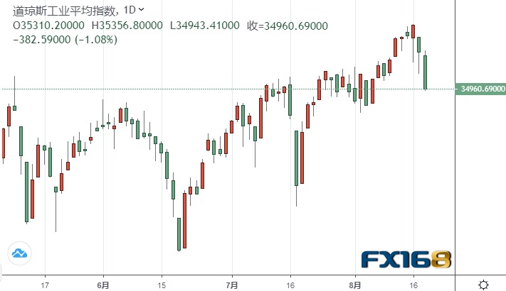 因美联储7月会议纪要暗示年内可能削减购债规模,且此前出炉的美国7月零售数据远逊于预期,引发投资者对美国经济复苏前景的担忧。美股周三收跌,道指连续第二个交易日下滑。