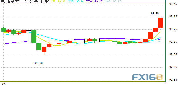 会议纪要公布后,美元一度下挫近30点,不过美元指数随后反弹,收报93.17,上涨0.04%。周四亚市早盘,美元指数短线再度急涨,最高触及93.35,触及日内新高。