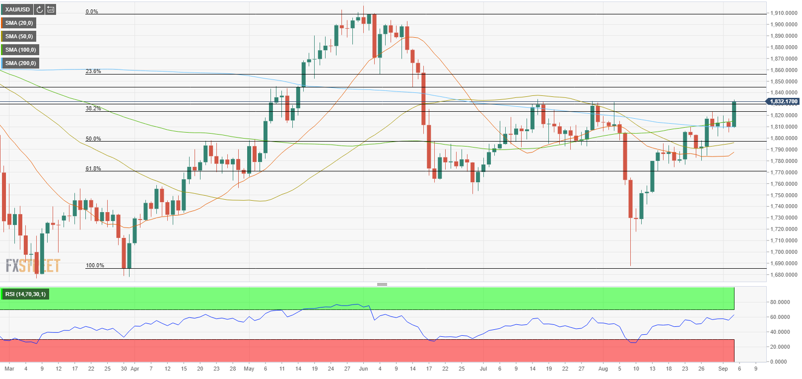 另一方面,1830美元(静态水平)是首个支撑位,如失守将跌向1820美元(38.2%斐波那契回调位)和1810美元(200日移动均线)。只有日收盘价低于后者,才有可能导致技术前景在短期内转为看跌。