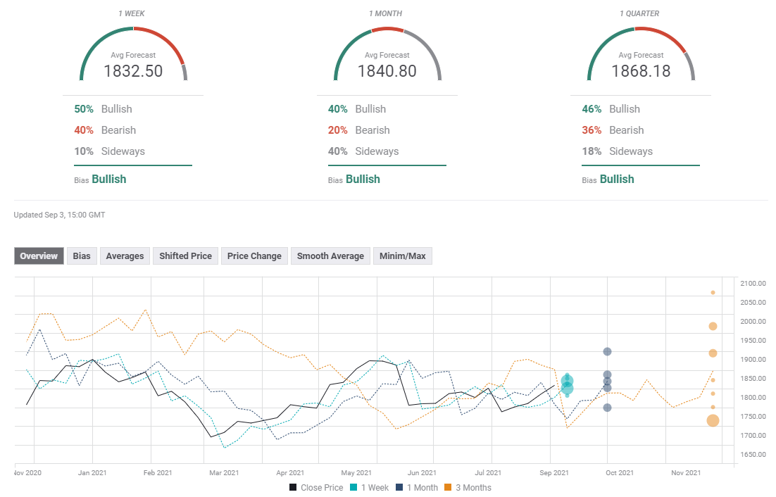 FXStreet Forecast Poll显示,黄金短期内料仍处于盘整阶段,一周平均目标价为1832美元。此外,50%的专家对下周持乐观态度,而40%的专家则持悲观态度。一个月的观点显示出些许看涨倾向,只有20%的投资者预计价格将低于当前水平。