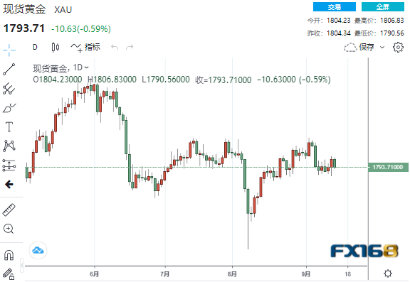 FX168财经报社(北美)讯 周三(9月15日),金价回落,受到一波技术性抛盘的打击,此前金价未能守住1800美元关键水准上方,投资者并未在意疲软的美元,转而寻找有关美联储缩减策略的更清晰线索。