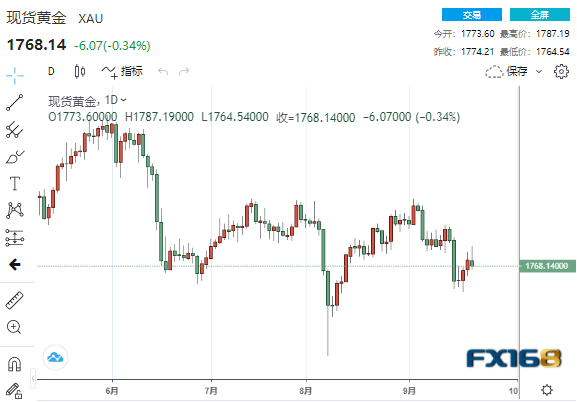 (现货黄金日线走势图,来源:FX168)