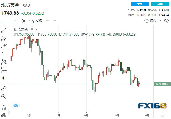 美市尾盘,现货黄金收报1749.88美元/盎司,下跌0.35美元或0.02%,最低触及1744.74美元/盎司,较日高1760.78美元/盎司回落16美元。上周,现货黄金下跌4.14美元或0.24%。