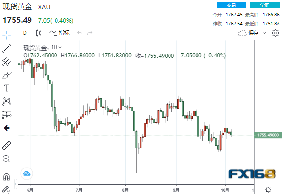 美市尾盘,现货黄金收报1755.49美元/盎司,下跌7.05美元或0.40%,盘中最低触及1751.83美元/盎司,较日高1766.86美元/盎司回落15美元。