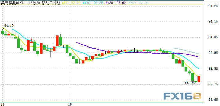 美元指数自接近94关口的水平持续滑落,目前最低触及93.76。