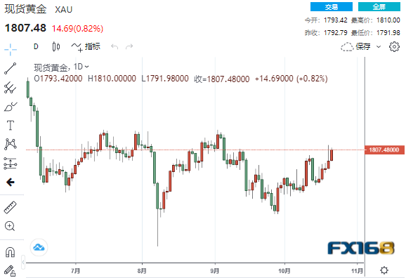 (现货黄金日线走势图,来源:FX168)