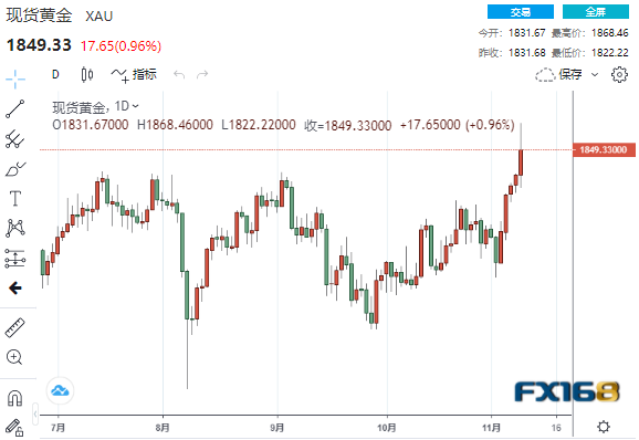 FX168财经报社(北美)讯 周三(11月10日),黄金攀升至近五个月来最高点,此前有数据显示美国上月通胀率高于预期,可能给美联储官员施压,要求其快速结束近零利率。通胀飙升提振了黄金作为通胀对冲的魅力。